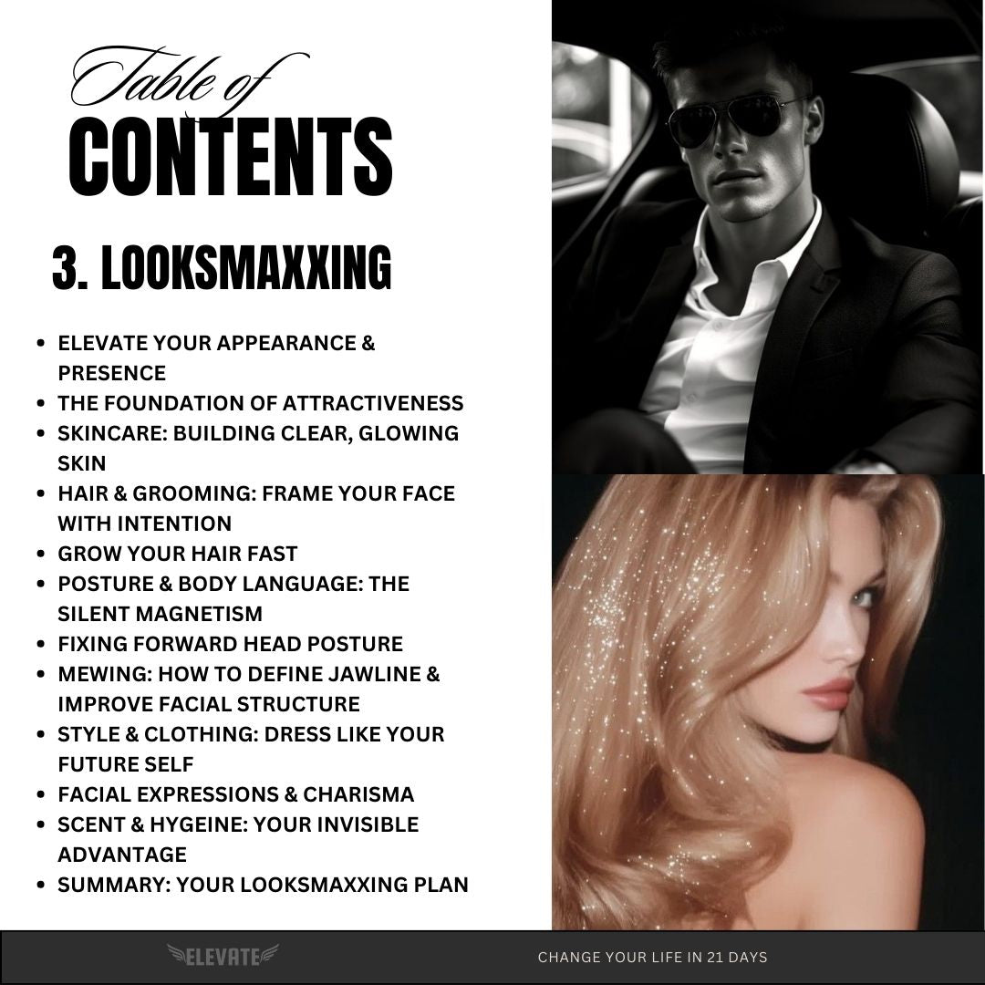 Yes. Everything is written for someone starting from zero. The concepts are explained clearly, without assuming prior knowledge in fitness, nutrition, money, mindset, or looksmaxxing. You’ll learn how things actually work, why they matter, and how to apply them in real life at your own pace. If you already have experience, this serves as a powerful reset and structure reminder, helping you reconnect the dots, clean up bad habits, and apply the fundamentals more consistently. Whether you’re brand new or just need direction again, this gives you clarity, confidence, and a solid foundation to build on.